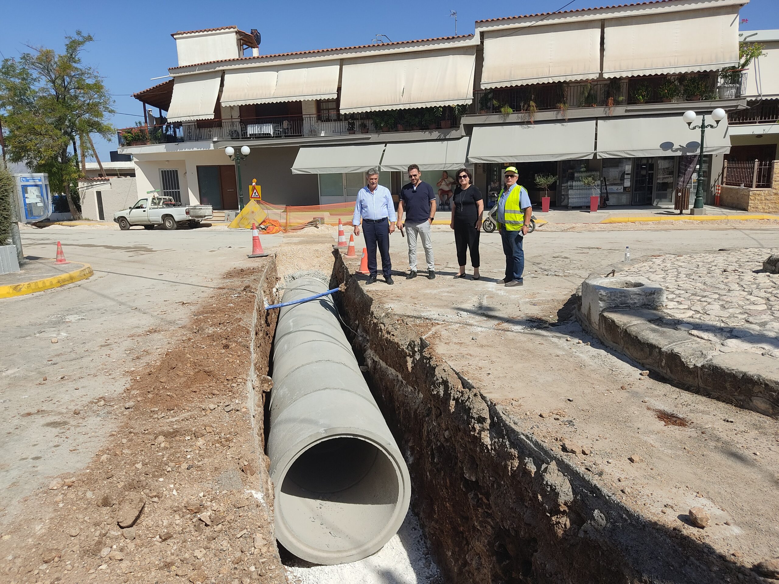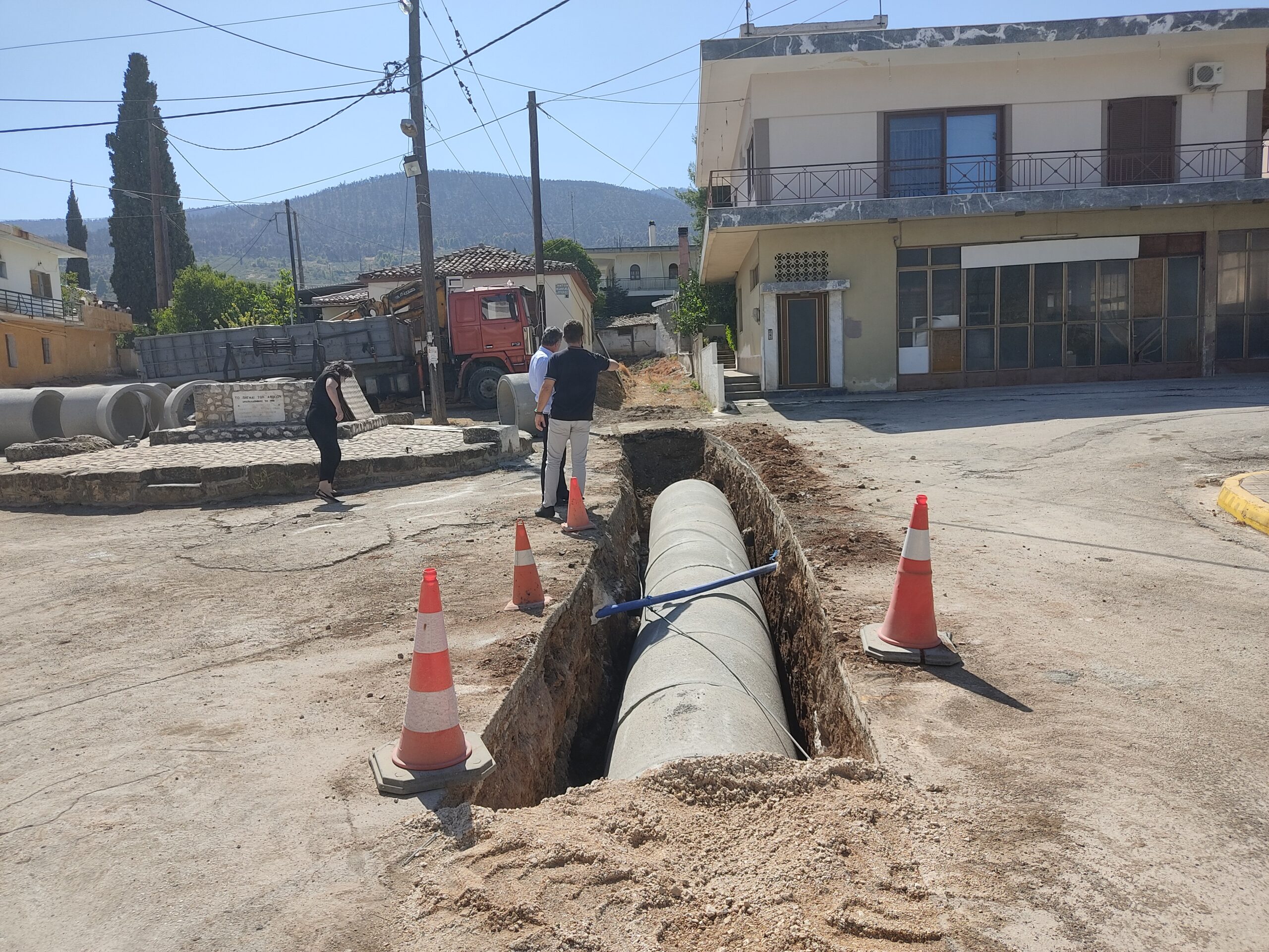 Επίσης κατασκευάζονται στον παραπλήσιο κεντρικό οδικό άξονα, υπόγειοι αγωγοί Φ1.000, και μήκους 200 μέτρων, οι οποίοι θα διαχειριστούν τα όμβρια ύδατα της ευρύτερης περιοχής απευθείας προς το πλησιέστερο υδατόρεμα, αποφεύγοντας έτσι πλημμυρικά φαινόμενα στις παρόδιες κατοικίες και καταστήματα, όπως στο πρόσφατο παρελθόν.
