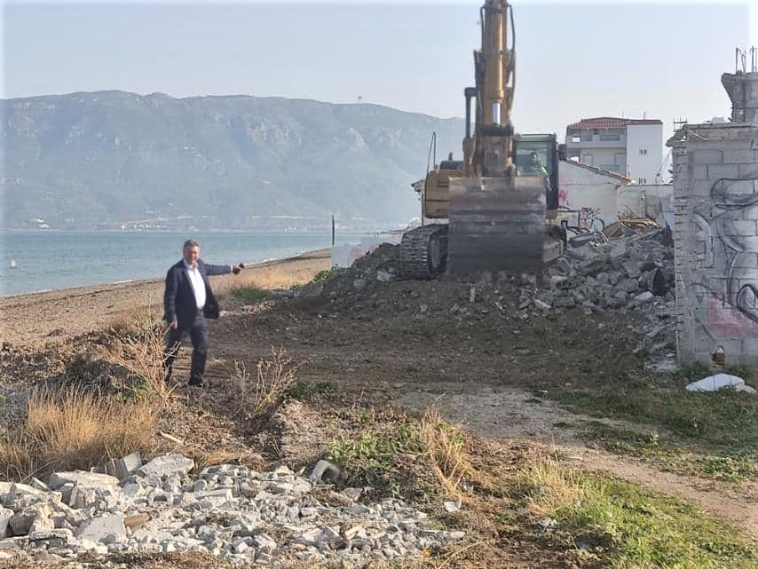 Συνεχίζονται οι κατεδαφίσεις των αυθαιρέτων κτισμάτων στο Κεραμιδάκι και στο παραλιακό μέτωπο προκειμένου να προχωρήσει το έργο της επέκτασης του παραλιακού πεζόδρομου.