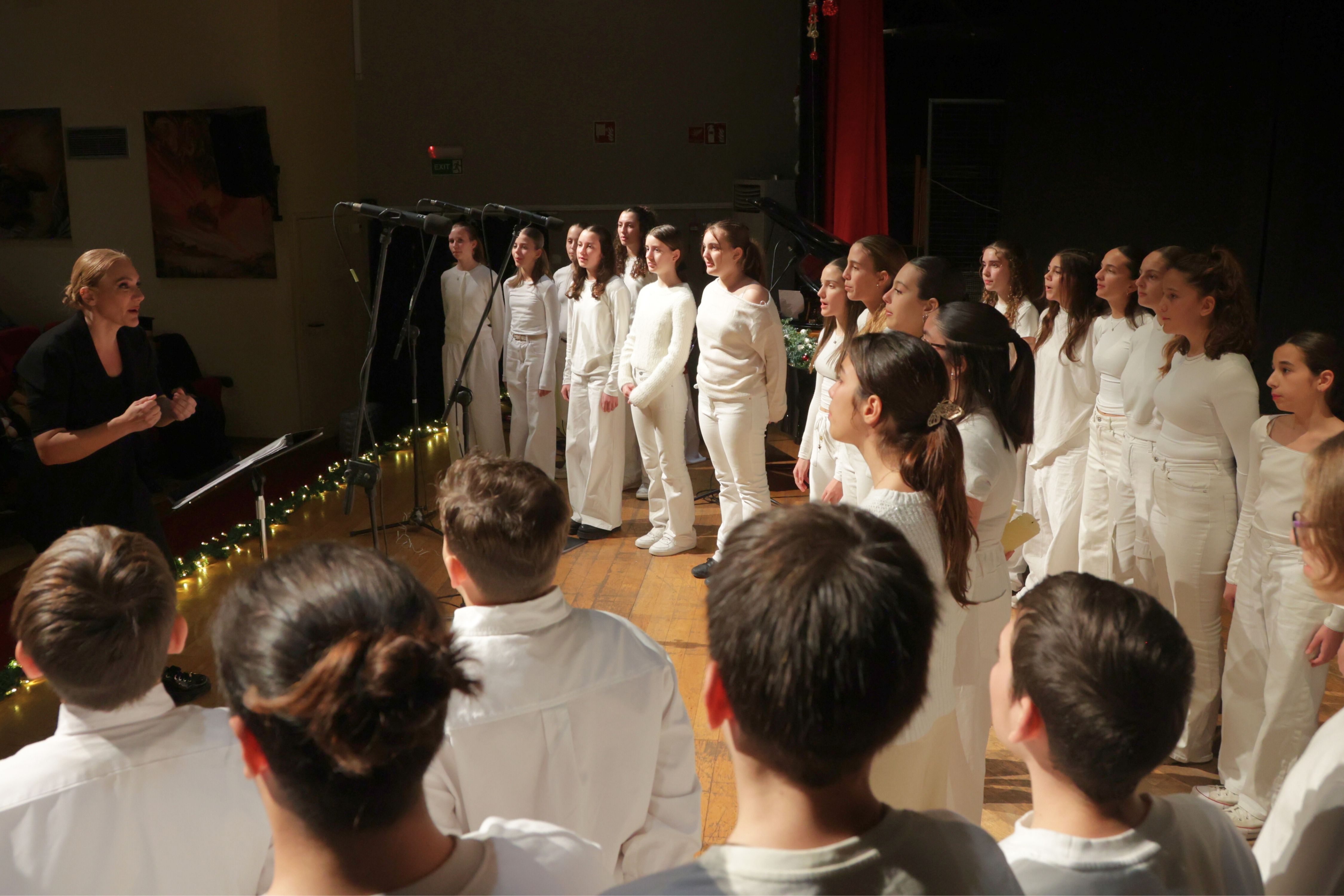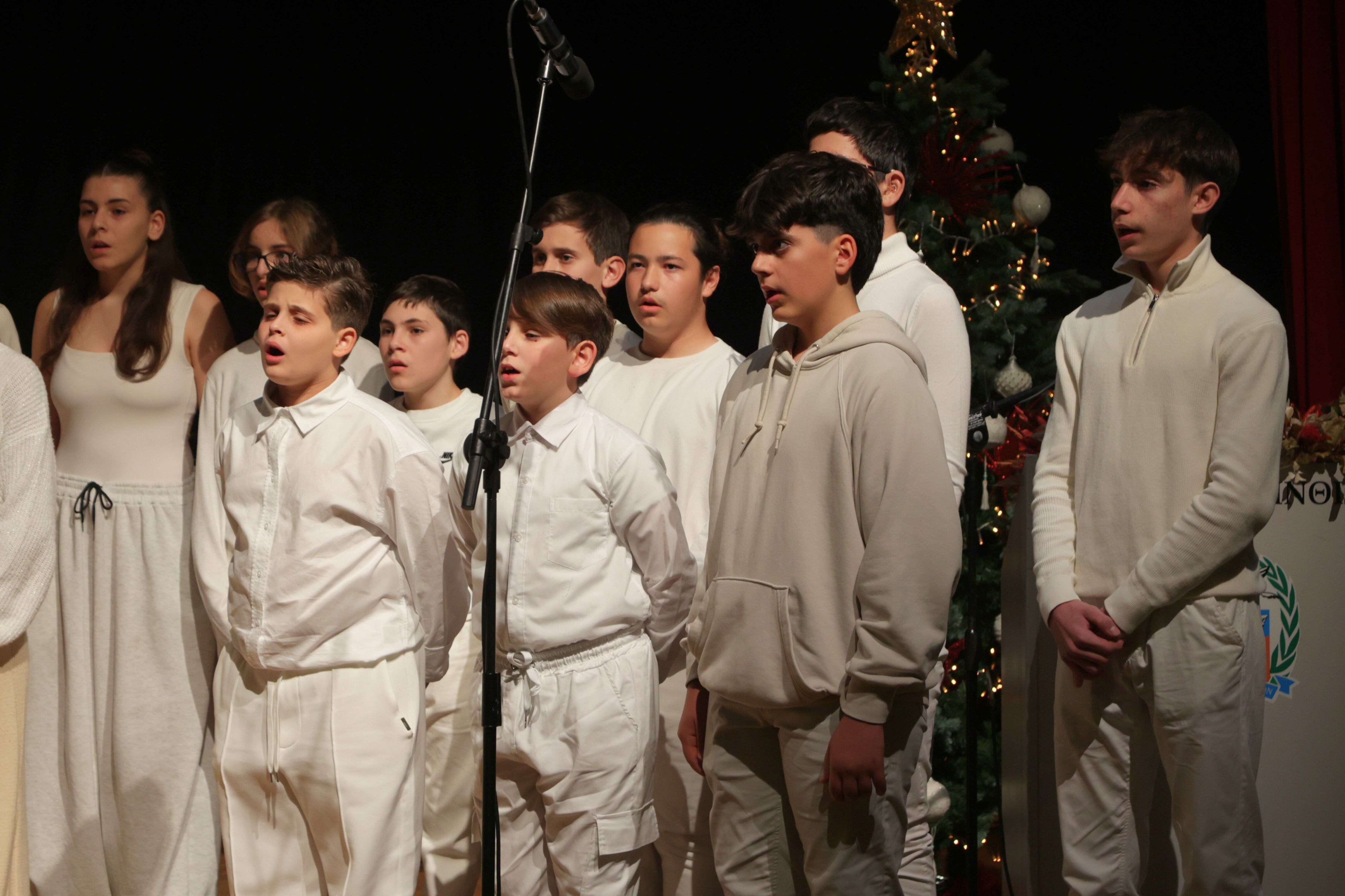 Η Χορωδία του Μουσικού Γυμνασίου – Λυκείου Κορίνθου, υπό την καθοδήγηση της καθηγήτριας – μαέστρου Πετούμενου Γκρέκα και με τη συνοδεία του μουσικού και πιανίστα κυρίου Νικολόπουλου, ταξίδεψε το κοινό σε χριστουγεννιάτικες στιγμές πνευματικής ανάτασης μέσα από άρτια εκτελεσμένες φωνητικές και μουσικές συνθέσεις.