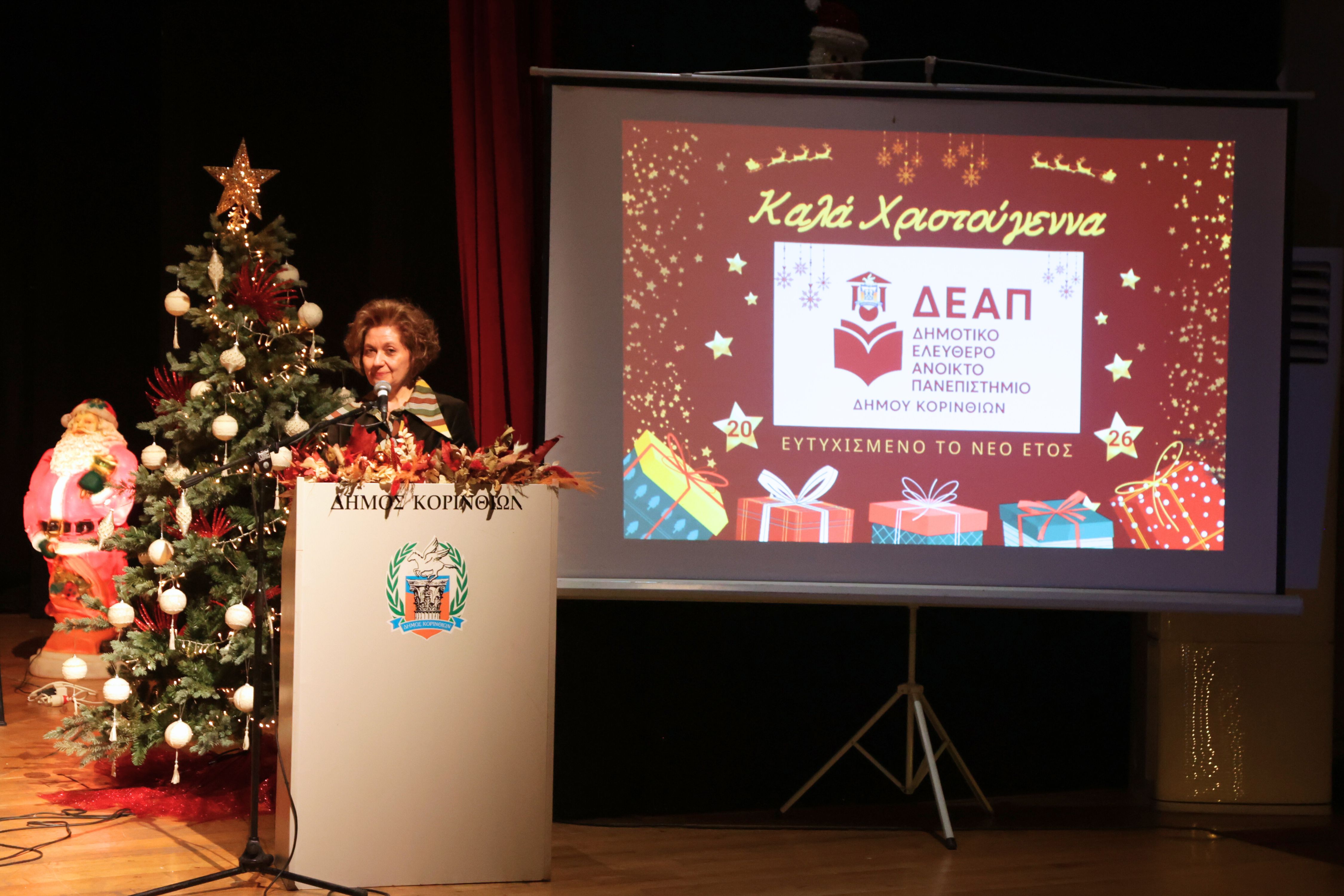 Σε κλίμα γιορτινό, κατανυκτικό και ιδιαίτερα ζεστό πραγματοποιήθηκε η τελευταία Επιστημονική Διάλεξη του Δημοτικού Ελεύθερου Ανοιχτού Πανεπιστημίου (Δ.Ε.Α.Π.) του Δήμου Κορινθίων, με κεντρικό θέμα τις «Χριστουγεννιάτικες Μελωδίες».
