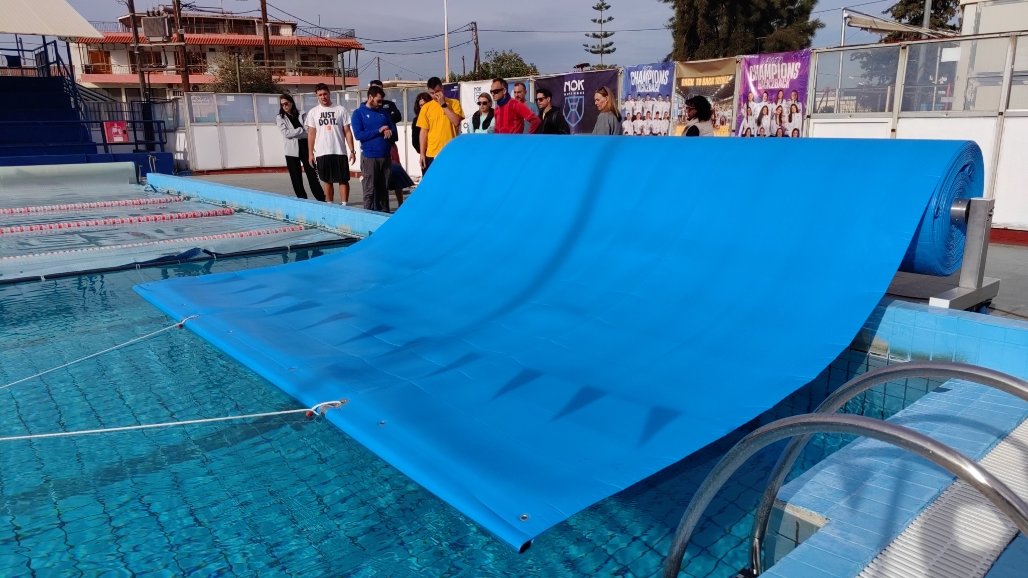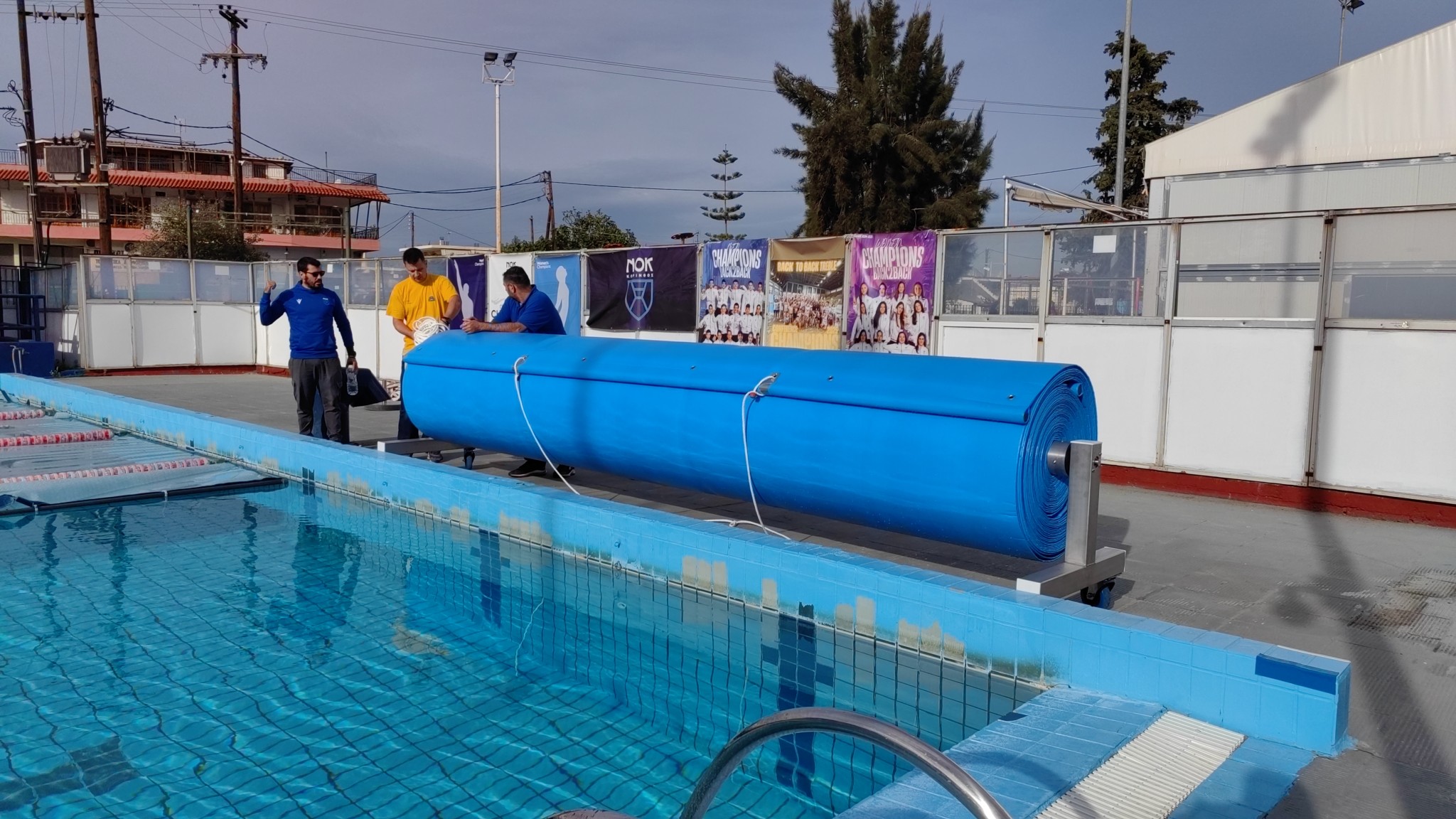 - τοποθετήθηκε θερμικό κάλυμμα στην πισίνα του Δημοτικού Κολυμβητηρίου. Η παρέμβαση αυτή εξασφαλίζει σταθερή θερμοκρασία στο νερό και περιορίζει τις θερμικές απώλειες, ενισχύοντας την αποτελεσματικότητα της εγκατάστασης και μειώνοντας το ενεργειακό κόστος.