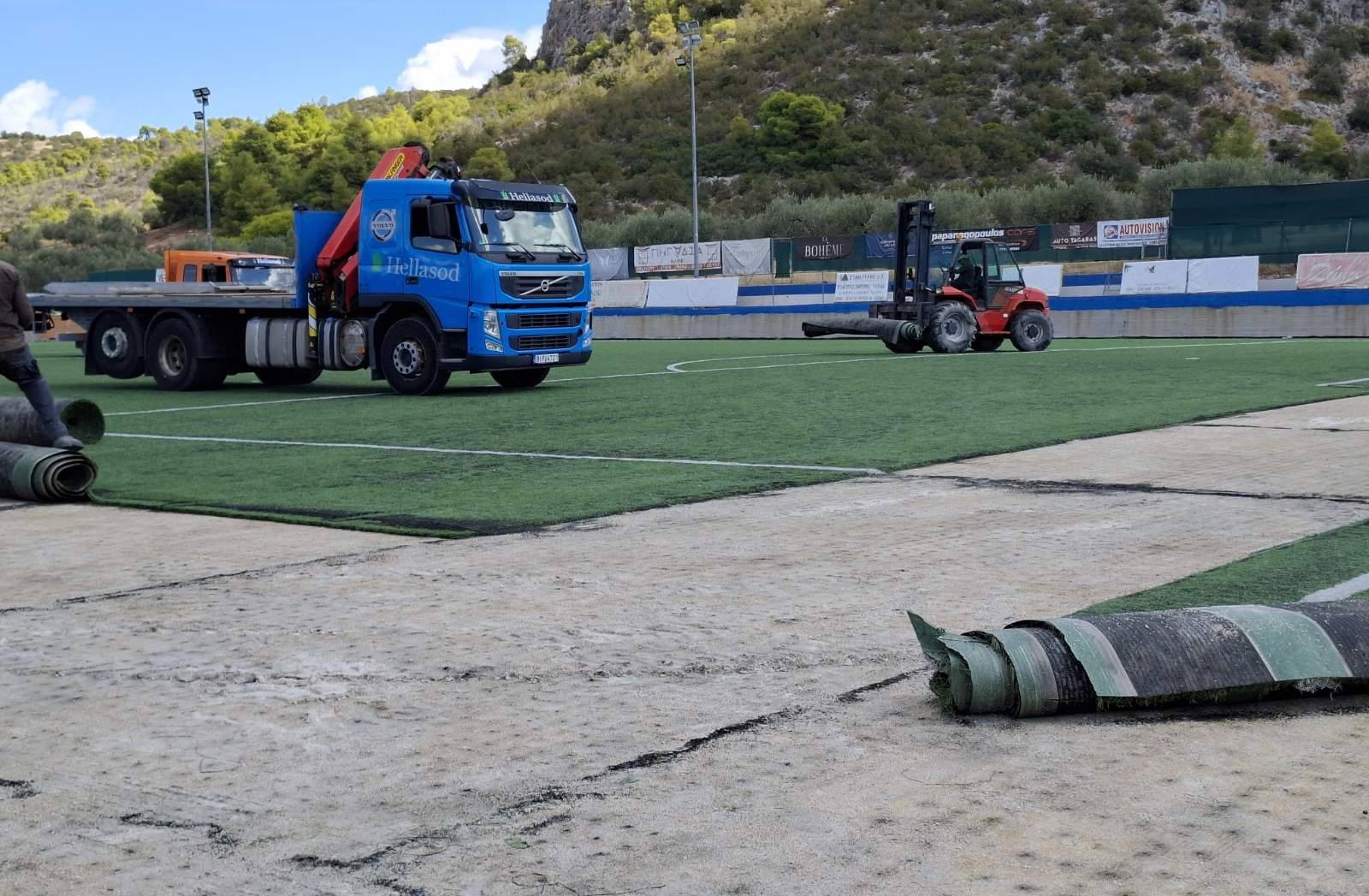 Υλοποιώντας τη δέσμευσή μας για ανανέωση όλων των ποδοσφαιρικών γηπέδων αρχίσαμε την Τρίτη την αντικατάσταση του χλοοτάπητα στο γήπεδο των Αθικίων. Το έργο αυτό αποτελεί μέρος ενός ευρύτερου προγράμματος αναβάθμισης των αθλητικών υποδομών του Δήμου, με αντίστοιχες παρεμβάσεις να ακολουθούν το επόμενο διάστημα. Ειδικότερα μέσα στην χρονιά θα αλλάξουμε και τον χλοοτάπητα στο γήπεδο της Ξυλοκέριζας και θα ακολουθήσουν αμέσως μετά τα γήπεδα Άσσου, Χιλιομοδίου και Αρχαίας Κορίνθου. Και την επόμενη χρονιά θα κάνουμε το ίδιο στα γήπεδα Εξαμιλίων και Σολομού.