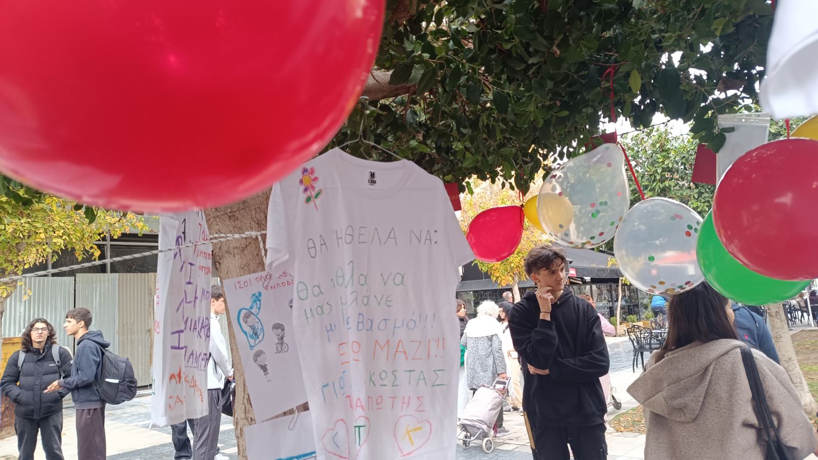 Οι συμμετέχοντες φορούσαν λευκά μπλουζάκια με μηνύματα αποδοχής, δίνοντας έμφαση στην αξία της συμπερίληψης και την ανάγκη να χτίσουμε μια κοινωνία που αγκαλιάζει κάθε άνθρωπο.